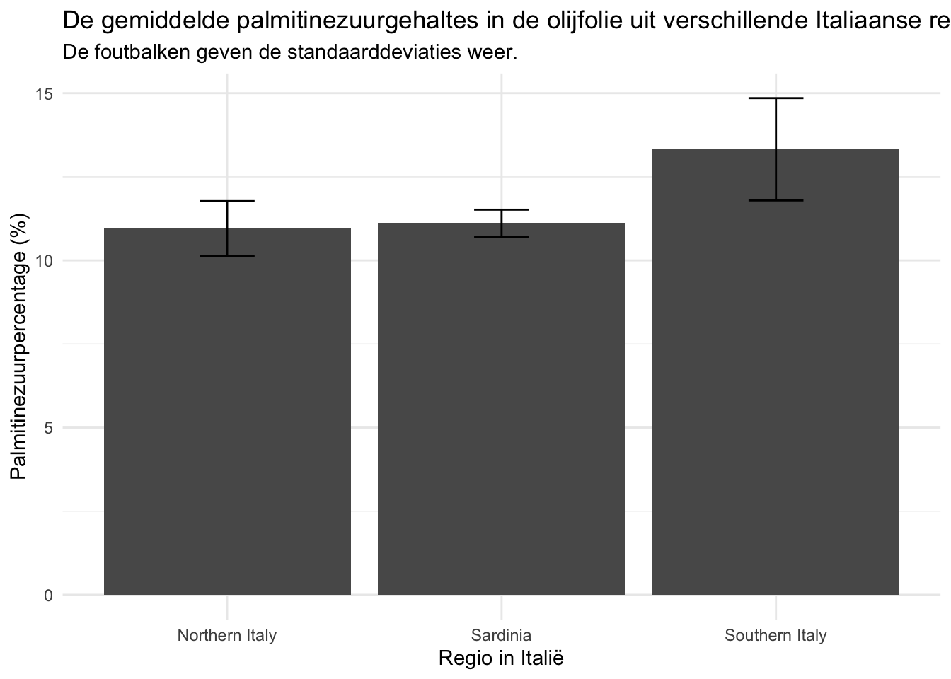 title = "De gemiddelde palmitinezuurgehaltes in de olijfolie uit verschillende Italiaanse regio's.",