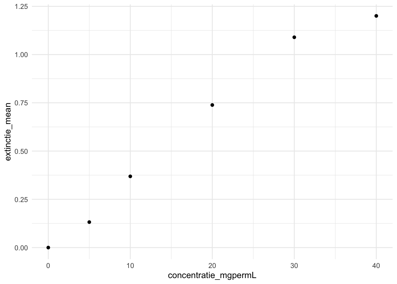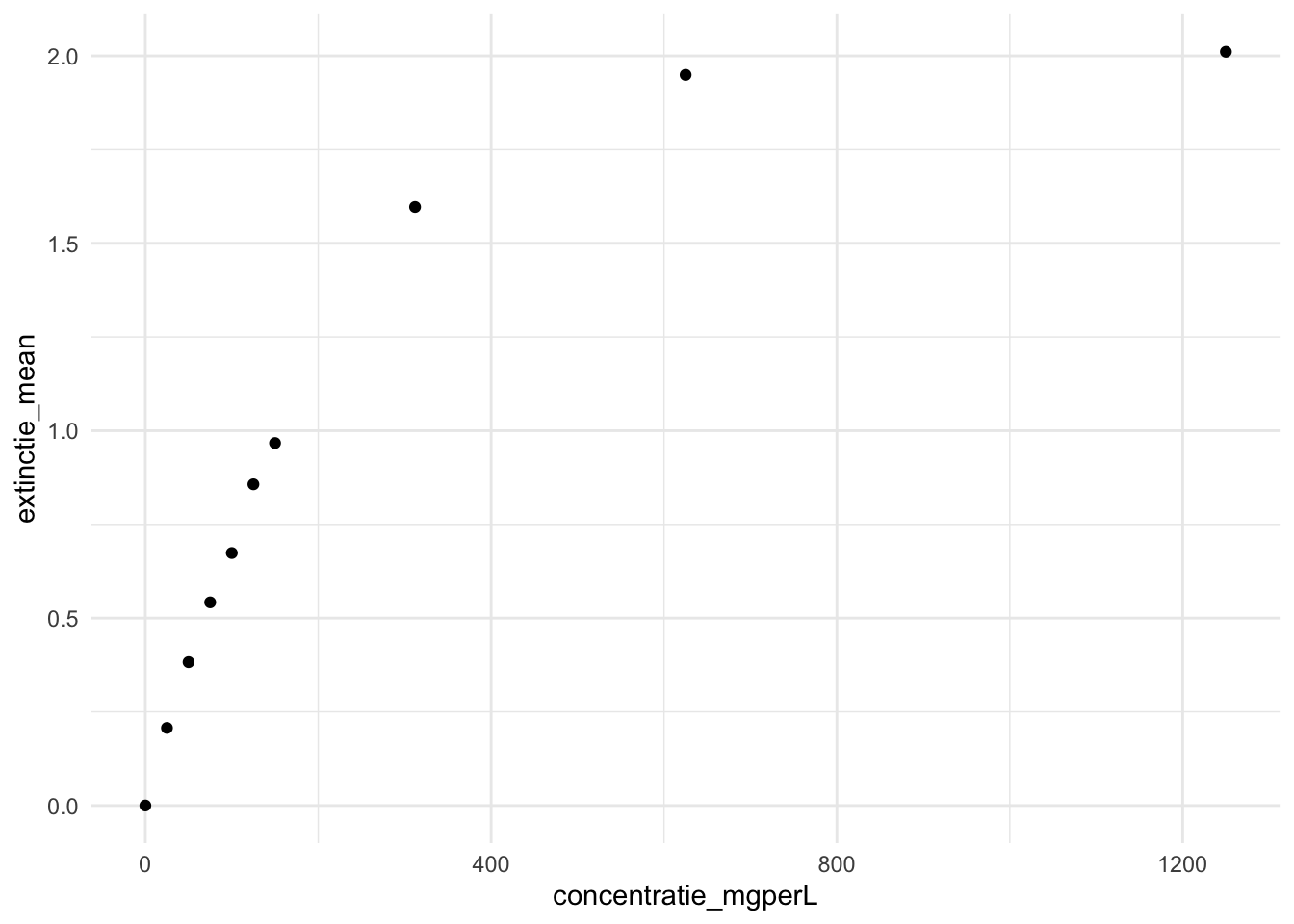 ggplot(aes(x = concentratie_mgpermL, y = extinctie_mean)) +