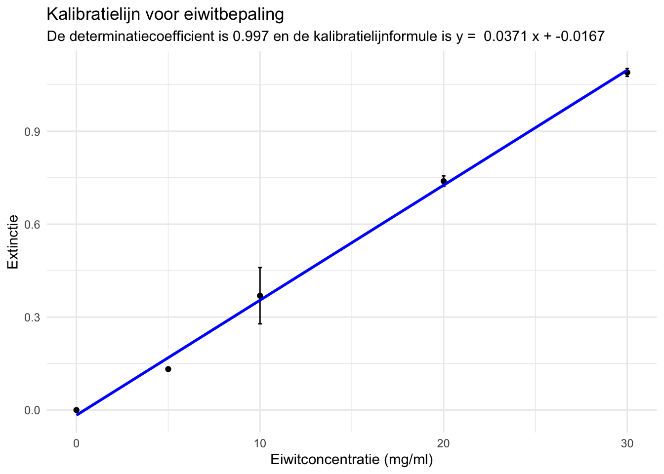 labs(title = "Kalibratielijn voor eiwitbepaling",