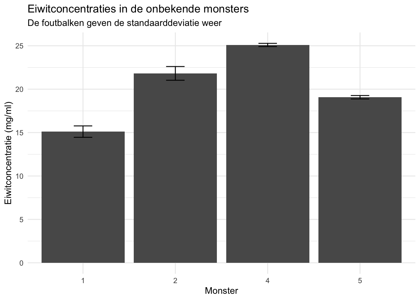 monsters <- read_excel("eiwitbepaling.xlsx", sheet = "monsters")Opdracht 4