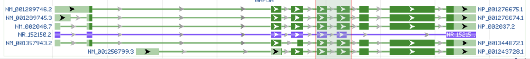 Om de qPCR uit te voeren voor VGLUT1 is een referentiegen nodig. Een veelgebruikt referentiegen is GAPDH. Bepaal voor dit gen welke exonen gebruikt kunnen worden voor het ontwerpen van qPCR primers en zoek de bijbehorende coördinaten op.