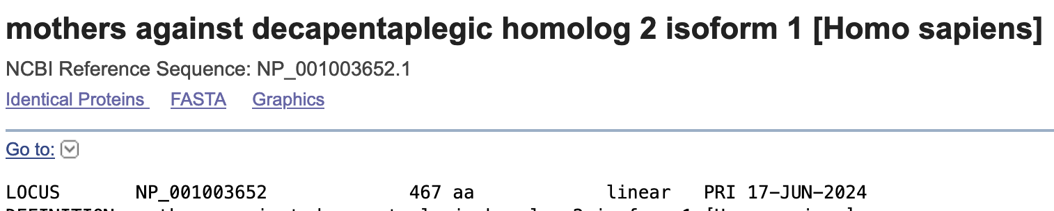 Bepaal voor het SMAD2 eiwit dat je hebt gevonden in de vorige opdracht: