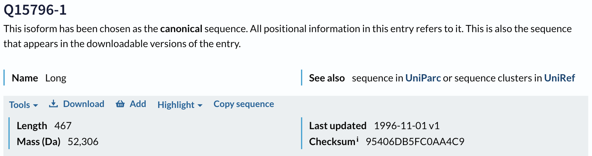 Het moleculaire gewicht en de aminozuursequentie opzoeken in Uniprot