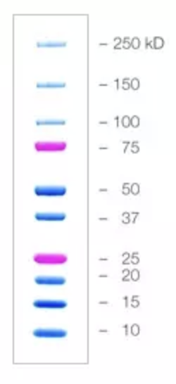 We willen een Western blot uitvoeren met het ALK eiwit. We gebruiken hiervoor de volgende eiwitmarker: